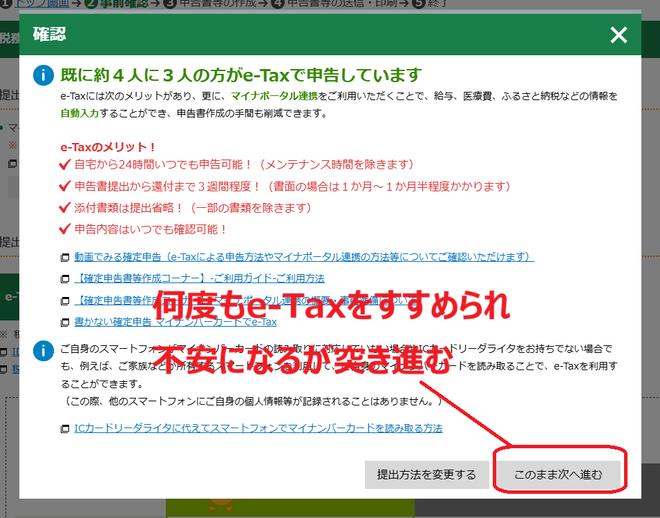 固い決意をもって「このまま次へ進む」をクリックしましょう!!